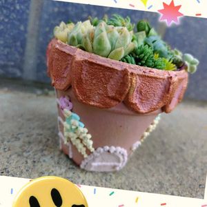 先日のインスタライブで 当選した リメイク鉢♥ 寄せ植えしてみました。 まだ苗がシワシワ(笑) こんな鉢が作れるように 教室に通おうかと考え中🤔 いっつも我流でやって 中途半端な私。あと何年かで還暦の私も 老後の楽しみ✨️見つけたい! 🏷️新たなチャレンジ✨️