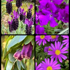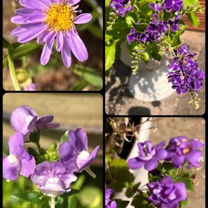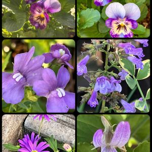こんにちは☀️ 色シリーズ 紫編🪻🫐 ①②③ 今咲いているお花達 ④ ダンナの実家のブルーベリー🫐 4回目の収穫 1.5キロ😆
