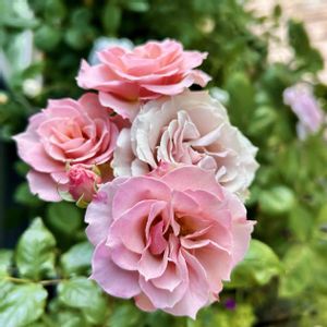 2024.5 バラ銘仙 バラいおり の記録memo きょうの大雨でほとんどのバラさんがうつむいて…うなだれてしまってるけど。 銘仙さんといおりさんだけは、さすがF&Gローズ。ステムしっかりしててうつむかない‼️ 小さな花瓶しかない、我が家。 とりあえずいおり🌹さんは✂️してテーブルで愉しむことに♥️ 今年の銘仙さんは春でも結構色出たなー♥️やはり大好き3種。 あおいさんもまだモリモリ咲いてます。 銘仙、いおり、あおい