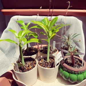 世界最大と言われるパキポディウム 雨が降りそうなので 避難🏠 。 1ヶ月で物凄く変わりました〜🌵✨ 。 まるでヤシの木 🌴 。 この子は約2歳 これからが楽しみな子です😍☀️