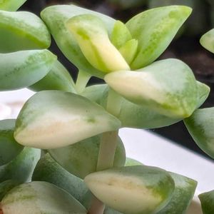 おはようございます☔😃☔ サルメントーサ(クラッスラ属)🌿 徒長してビロ~ンと伸びた猿面父さん🐵 チョンパ✂️挿し芽して、2ヶ月ほど、カワユクなって上手く行った感じ🎶 よい一日を🐬.。o○🌈🌏