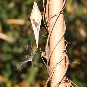 散歩道にコバノカモメヅルが咲くところが2か所 1ヶ所は2年ぶりに花を見られて喜んでたら 刈り取られてガッカリ(T_T) もう1ヵ所は支柱を立ててある所だけど花が高い場所で咲くので近くで見られません。 しかも今年は花が少なかった。 来年また花や冠毛が見られることを願って以前撮った支柱のある場所の冠毛を投稿します(^-^) 2022/12/19 散歩道 コバノカモメヅル/小葉の鴎蔓 キョウチクトウ科 カモメヅル属 つる性多年草 在来種