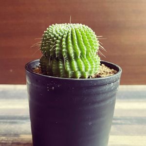 最初はそうでもなかったんですが、 お店に行くたびこのハゲ散らかした感じの金晃丸に惹かれて連れ帰りました ∣ 彡 ⌒ ミ (´・ω・) ,(ヽ∩∩ノ),、 🤣ナンカカワイイ💕 ③頭のてっぺんにま一本トゲがあります😁 ノトカクタス・棘無金晃丸🌵