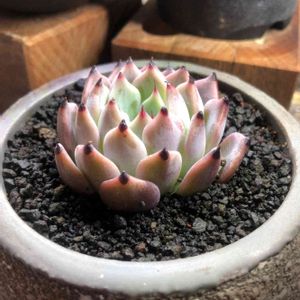 ギュっと締まってしまったローラさん? もう少し水吸ってくれるといいんだけど、 吸わない、、、 根が弱ってる?? 頑張れ‼️‼️