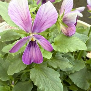 花日和×見元園芸さんコラボレーションビオラ 『ミシェルラビン 』 購入後いったんお花がお休みに その後、葉が這うように徐々に広がって、やっとまとまって咲くようになりました✨ 優しいグラデーションのラビット型のお花が、とっても可愛らしいです🐰💕 日本列島に最強寒波が来ていますね💦 温暖な私の住む地域でも、朝晩とても冷えています 仕事がお休みだったので、鉢薔薇の土替えを進めたかったのですが、強風と寒さのため2鉢で断念しました😱