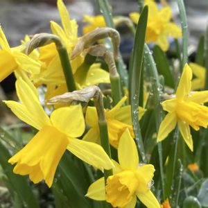春を感じさせる数日を過ごしたからか、今回の寒波はより寒く感じます…❄️ 先日の暖かい陽射しで花が増えたミニスイセン テータテート 横向きギューギュー詰めで咲く姿は楽しげで…^_^ 一説には、スイセンの花が横向きとか下向きに咲く事が多いのは、雌蕊や雄蕊を春先の北風や雪から守る為と言われているのだとか… 今回の様なジェットコースター的寒暖差を見れば…然もありなん‼︎ ですね😹