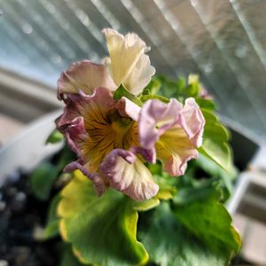 パンジー・ロココ ブリブリのドーム型がー 何か違う姿になっちゃった🥺 何度も鉢をスッ転ばし棚から落としと過酷な惨状 でも枯れずに咲いてくれるなんと健気な🎵 他のロココ達と同じように買ったときについてた姿に戻ると良いなぁ