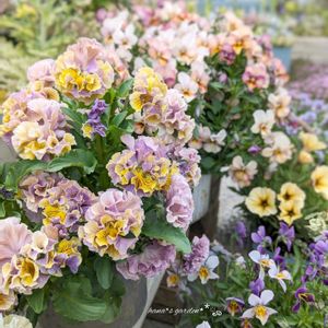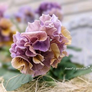 モネの作品群『積みわら』から着想を得て 異なる時間、季節、天候 それぞれの光の下での風景をイメージしたパンジーだそうです かなり色幅がある品種ですが、私はこちらをチョイス 咲き始めの紫から橙に変化していく様子が 夜明けから夕方への時間経過のようで 変化を楽しめる逸品だなーと 惚れ惚れと見とれてしまいます モネの色彩を表現…て言われた時点で 『好き!』ってなっちゃうんです絶対