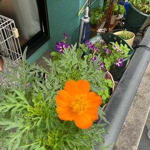 夏に強いね! 黄花コスモスかなー🤔 一般的な黄花コスモスより色がレモン色で可愛い🍋 2枚目は間違いなく黄花コスモス マリーゴールド赤 マリーゴールドオレンジ🍊 マリーゴールドなんて、種まき若葉がたくさん出たから、8月最初に半分くらい移植して、暑かったのにちゃんと花咲いて育ってる‼️😳 強いわ〜👍 7月5日