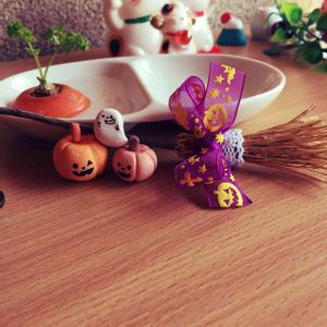 前に作った魔女ほうきにリボンをつけ ついでに紙粘土で作ったカボチャとオバケも飾ってちょっとハロウィン風✨