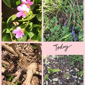 ヤル気の神(笑)が降臨して、一日中庭仕事と休憩してGS😆 なんとか気になりながら、延ばし延ばしにしていた作業終了! あ、後は天気予報を見ながら、木製品の塗り直しをしなければ😅 左上📷 ベビーサンローズの中から、雑草の可愛いお花❣️ 右上📷 表の庭にも、あちこちでムスカリが開花❣️ ムスカリも原種チューリップも、放置で楽だけれど、葉が伸びてのたうつのが…😆 左下📷 地植えのランタナの新芽❣️ 右下📷 ガーデンアマリリスの芽❣️増えてる💕 🐞と🦎に、何度も遭遇(⑉• •⑉)♡