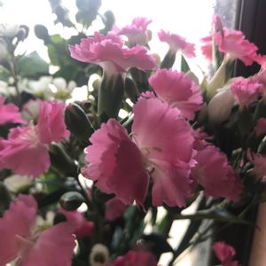 白のカーネーションは、ヒラヒラのレースが何枚も重なっているように見えます✨✨純白がいいです‼️ まだまだ暑いですが、時々吹く風が、夏とは違う感じがしています。
