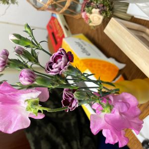 摘みたての花を購入。 生産者さんが搬入されているのをみてね❣️ 手前が先週購入したトルコギキョウ。 奥がソネットです。 癒されています❣️