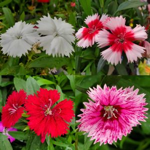 冬彩(ふゆいろ) ナゲシコシリーズ! 2枚目から家内(ソングフラワー)編です🙇♀️ ②③④⑤ プリムラ・ジュリアンさんいろいろ🩷💗🤍💛 (11/23、花園の園芸センターにて撮影)