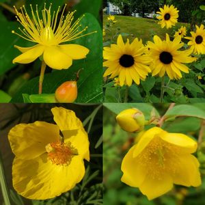 夏彩(なついろ) ぱわー、Power、パワー全開💛 ビタミンカラーを貴方に・・・! ヒペリカム・向日葵🌻キンシバイ ・カラクサゲシ(ケシ科) 花言葉〜赤は、愛の宣言・白は、 私はあなたにふさわしい・黄色は、 あなたの笑顔は太陽のようだ、です