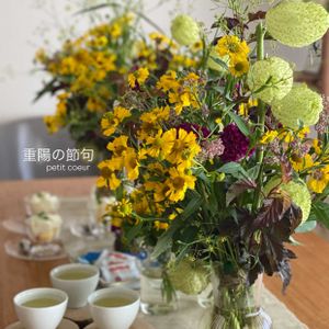 9月9日は重陽の節句 重陽はひな祭りや七夕など季節の節目を祝う五節句のひとつ。 重陽の節句は菊の節句とも言われ 菊の花を飾り長寿や無病息災を願います。 9月レッスンが上旬から始まるのは珍しく、キク科のヘレニウム(和名 ダンゴギク )をたっぷりとアレンジしました💛秋の七草も入れてます。 まだまだ暑い日が続きますが 秋の気配を感じさせるお花たち。