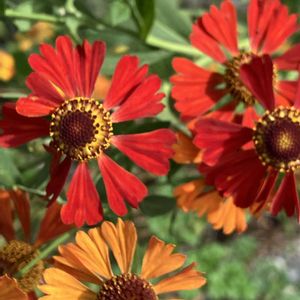 この時期から開花する花々 こちらは品種不明のヘレニウム 真っ赤の花が鮮やかです