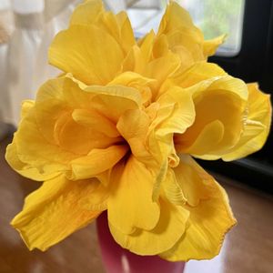 おはようございます🌂💧 朝から雨が降ったり止んだり 少し蒸し暑いです 我が家の ✿ 庭のお花達✿です 黄色系💛🌼撮りました ❶昨日、重すぎて折れちゃった ハイビスカス フルムーン🟡の蕾 小瓶に生けておいたら今朝開いて くれました🌼 ❷今年1番よく咲いてくれる ハイビスカス イエローベル💛 今日も3個咲いています🔔🔔🔔 ❸花壇のメランボジウム🌼& 畑フェンス際の団子ギク🌼 メランポは春に苗を植えて その後 こぼれタネから更新しながらずっと 咲いてくれます🥰猛暑にもとても 強い夏花壇の優等生😍 団子ギクは花期が短いのが残念💦 ❹❺ソロソロ終盤の オクラとゴーヤのお花🌼🌼🌼 未だ毎日食卓に出ています🥰 家計のお助け野菜達です⭕🙆🏻♀️
