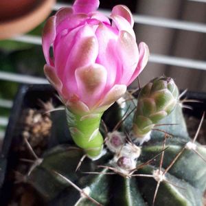 ギムノカリキウムLB2178×緋牡丹錦満開とはいかないですがやっと開きました‼️ 丸い蕾の状態からが長かった😨