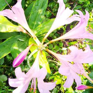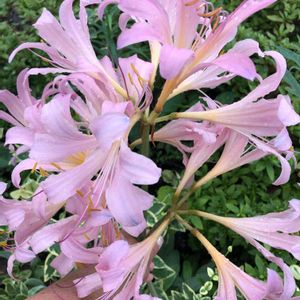 こんばんは、今日も暑い一日お疲れ様でした😃 ナツズイセン(夏水仙) 別名…ハダカユリ、ケイセイバナ、ツツラ、ピーピーグサ ヒガンバナ科 ヒガンバナ(リコリス)属 花の時期に葉が無い事からマジックリリーとも呼ばれてます😊 ナツズイセンの名前の由来は葉がスイセンに似ていて夏に花を咲かせる事に由来🌸🌿 暑いさなか4〜5匹の蜂が一生懸命に飛び回っていました🐝🐝🐝