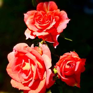 いきなりの真夏日🌞☀️ 庭の睡蓮鉢もぬるま湯?😱 強烈な陽射しの中 名も無きオレンジ色の バラ💮💮💮が咲き誇る! グリーンとオレンジの 組み合わせは最強💯 目立ち過ぎるやん✴️🥹