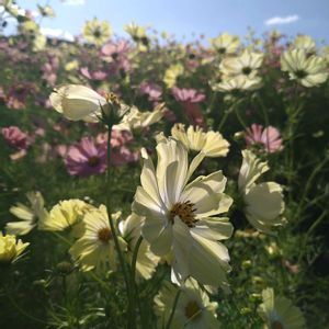 10.17 今日のお出掛け… 朝起きて… とっても気持ち良い晴天☀… コレは… 午前中の家事切り上げて… やっと行けそう♡ 午後… 丘陵公園へ🚗💨💨💨 久し振り〜♡ 恐る恐る歩き始めた… 先ずはコスモス♡ どうやら歩けそう… 眩しくて… 撮せてるかなぁ?… 今日はゆっくりユックリ… 時間決めて見て周りました… ちょっとだけボランティアスタッフさんとお話しして…ウフフ イエローキャンパスとオレンジキャンパスを縞模様に植えてあります♡ オレンジキャンパスは咲き始めはオレンジ色ですがお花が段々ピンク色めいて面白いです 混色植えとでも言えば良いでしょうか? 他のコーナーも縞模様に見えます 所により人の姿より背高さんも… 沢山のお客様がいらしてお花もスタッフさんも嬉しそう♡ 思い思いにスマホやカメラで… あっちもこっちも… 皆さん一番素敵♡を探しています 少しずつ周りの山も秋の色… 気持ちの良い時間を過ごせました 🩷💚🤍❣️🩷💚🤍❣️🩷💚🤍❣️ 秋桜に埋もれて今年も素敵♡ ありがとうございますm(_ _)m♡