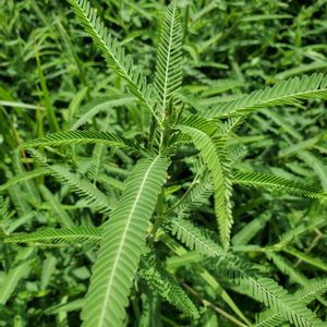 オジギソウでもねむの木でもなく、クサネムっていう一年草の雑草です。 どんどん増えるので水田の厄介者だそうです。🐧💦 庭の片隅に勝手に生えてました。 葉っぱがステキ!なので抜く前に一枚📷。