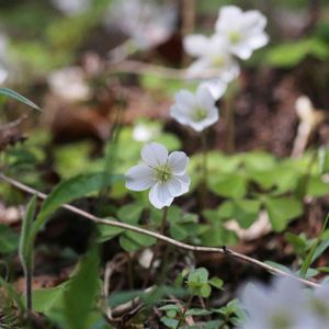 コミヤマカタバミ カタバミ科 北海道~九州 湿気の有る所を好む 花弁の脈に淡紅紫色が入る時が多い。 サイコクサバノオ キンポウゲ科 本州(近畿地方以西)、四国 湿気の有る所を好む 咢片に黒紫色の筋が入るの で良く目立つ。