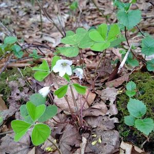 4/11に咲いていた花 コミヤマカタバミ(カタバミ科) 樹林下に群生します☺️白い可憐な花が愛らしい。 高知・工石山にて