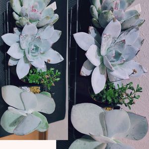 連投すみません。 粉が剥げちゃってるけど、惚れ惚れ♥ ホワイトロータスの 薄ピンク姿見て下さいな🎵 仙人の舞は、多肉で珍しい色で良いですよ。カランコエ属だから、これも寒さに気をつけないといけませんね💦