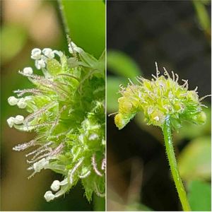 🌸🌿クワクサ🌿🌸 (クワ科 クワクサ属) イラクサ科って書いてあるのもありました🙏 葉がクワに似てるためクワクサ🌿 雄花 雌花 混じって咲くそうです🌸 ピンピンと糸状のが雌花の花頭 どちらの写真にも😆 左側の白いのが雄花 4本で1つみたい 可愛い💠やっと見ることが出来ました😍 いつも見かけるけれど ワシワシと抜いている🌿 去年、気になり名前教えて貰う🙏 今年は一本残して。 花も撮りたいと アハハ🤣1年越し💦 やっと 何とか撮れました〰️🤭 緑の雑草🌿 見た目 どこにも可愛い所がないけれど こんなに小さな可愛いお花を付けてました🌸 これも 今日、撮りました🤭 雌花 見たいな😅 ありがとうございました🙏💕
