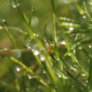 🌿アスパラガス🌿と雨粒💧 (キジカクシ科 アスパラガス属) 朝、小雨🌂の時に。 このたくさんの雨💧 吸い取っておくれ🌿🌱🌸🌳