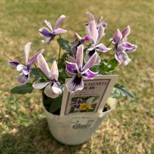 ロカ ハーツ『月狼』 とってもハンサムなビオラに出会いました💜🌿✨ レジで店長さん?が、何やら不思議そうに苗をじ~っと見て「1輪だけ花びらが6枚❣️」と教えてくれました😳 何か良いことがあるかも⁉️と思ったら、 早速1,500円以上のお買い物で、パンビオ苗を1ポットプレゼント✨という嬉しい特典が😆💕💖 🏷️ビオラ・パンジー祭り♪