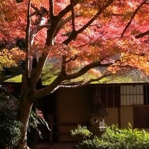 今日の、千里万博公園、この時期だけ公開されるお茶室の紅葉です。 今日が最高かも