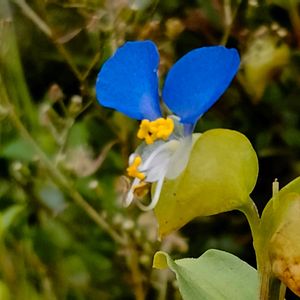 💕大好きな💙💛蛍草💕 (ツユクサ 露草 ホタルグサ 蛍草) 子供の頃から インクグサと言って (そんな名があるかどうかは知らない) 潰して色汁を作り 割り箸を削って 紙に絵や字を書いて遊んだ 〖 蛍草 〗という呼び名は 単行本 葉室麟の小説で 知りました とても素敵な呼称に魅了されました でも もっと、もっと古くから使われて 和歌やら、俳句に読まれて (* 'ᵕ' )☆いたのですね💕︎ 露草、蛍草、月草について 調べていたらこんな句に 出愛いました 🔹後藤比奈夫🔹 朝露も人の心も朝素直 🔹加藤秋屯🔹 蛍草のそのやさしさへ歩をり 🔹松本たかし🔹 くきくきと折れ曲がりけり蛍草 ふたひらの花びら立てて蛍草 ホタルグサ科 ホタルグサ属 露草の花は 白い萼片が3枚、花が3枚 色がついているのは 上の2枚だけ 下の1枚は小さくて半透明なので 2弁のはなのようにみえる 雄蕊は6本、形は3種類 象の牙🐘のように下の方に 長く突き出た2本と 真ん中の1本が 受粉に使われる花粉がつく そうです 上の黄色が短い三本は派手ですが 花粉は入っていないそうです 昆虫達を誘う為の贈り物(*^^*) 雄花と雌花 両生花 雄花だけ のも有り 何方も 受精能力が高い 地下茎でも受精する機能が あるそうです オマケに 横に這った茎が地に着くと そこからも根を張ります (´°v°)/んぴッ🍀*゜ 繁殖力は半端ない💦🤣 逞しい野草です (⑉• •⑉)スキデス❥❥(⑉︎• •⑉︎)ポッ 今日のお花
