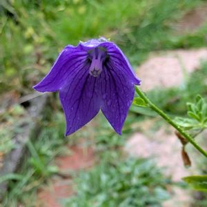 今日はザーッと降ったかと思えばパタッと止んでみたり、難しい天候です🤔 紫の桔梗が一輪咲いているのを発見! 雨降るなか傘をさして撮りました🤳 白、紫、絞りと 今年は3種の花色が揃いました☺️💓