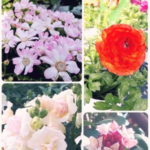 本日出会ったお花たち🌹 右上から時計回りにラナンキュラス・沈丁花・八重咲き金魚草(みーさん回答ありがとうございました✨)・サイネリア