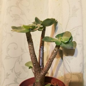すっかり細くなってしまった💦 モロキニエンシス 寒さに弱いので室内避難 南側の窓辺へ。
