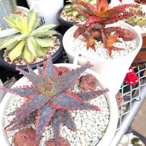 派手なアロエちゃん✨ ラヴァのおチビちゃんは順調に成長⤴️ ホントにマグマみたいな色が凄い😳 TCTハイブリッドちゃんは青紫の葉に蛍光ピンクみたいな刺が目立ってる🤭 これから良い季節だから楽しみだぁ🤤