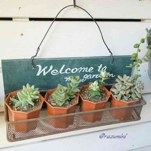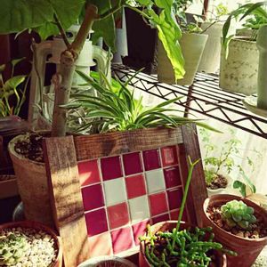 昨日お友達と一緒に作ってきたタイルトレー💗植物をのせちゃうとせっかく並べたタイルが見えなくなっちゃうので、まずは記念撮影🎶