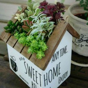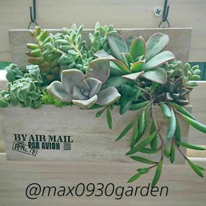 100均のレターボックスに色塗って転写シールしました🎵 昨日の寄せ植えで残った多肉ですがまあいい感じでは😄 台風気になる~😱😱😱
