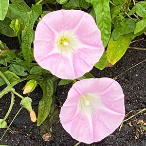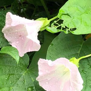 今日のお花 ♡ヒルガオ♡ ☔️に打たれたヒルガオ 花言葉 絆、友達のよしみ、情事😵
