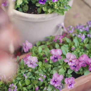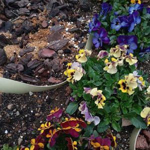 #ももかビーコン ビオラ3株植え 1株100円とは思えない色合い綺麗で好きです💕 たくさんお花を育ててると、追肥が大変だったのですが カダン感動肥料花用に変えて追肥不要になったのでかなり楽になりました😆✨