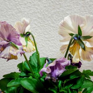 北陸特有のどんより空が続いてます 先日、迎えたビオラ「フェデネージュ クレープ」見計らい3種😃 少し色変わりしてきたので 🆙しますね🥰 【優雅なフリルとシックな色合いが魅力的です。♡洋の雰囲気を装いながら ちりめんを思わせる和のティストも持ち合わせる🏷️】