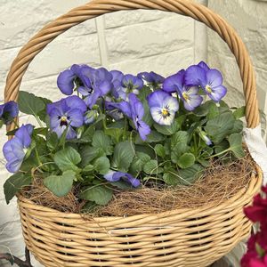 おはようございます☀️ 先日お迎えしてた 小輪パンジー💙ジェリービーンズを バスケット🧺に植えました♡♪ 1苗がモリモリな苗🌱を2苗植えちゃいすでにモリモリかな😅