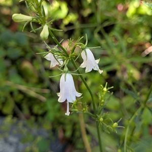 ツリガネニンジン(釣鐘人参) が咲きはじめました✨ 蕾は上を向いています 暑さのためでしょうか?ずいぶん小さなお花です😮💨 キキョウ科 ツリガネニンジン属 花期 8〜10月 若苗は山菜のトトキ