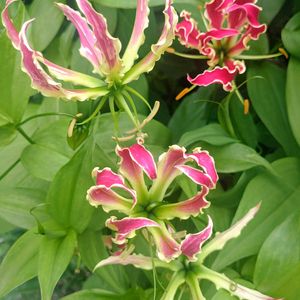 庭のグロリオサが咲き始めました✨ 面白い形のお花です💕 葉の先が蔓のように絡まっています。 球根に毒があります⚠️ とても丈夫で増えすぎて困ってます😅 イヌサフラン科 グロリオサ属 花期 6〜7月 熱帯アジア、アフリカ原産 有毒植物⚠️