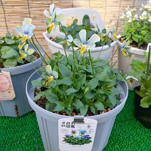 神戸ビオラ お一人様ではなく。。😅 パスフリジュエルボックス・パルプンテの寄植え 色変化今の所ないけど好きなお色なので👌 ミルフル パスフリ淡青