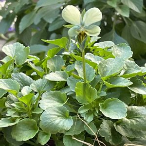 すみれ図鑑をいれた寄せ植えバスケット🧺 今年のビオラ第一号で届いて1番最初に植えたのがすみれ図鑑 届いた時は濃いグリーン今はこんな感じ、綺麗だね✨ 反対側もすみれ図鑑だけど今は花なし 去年もだんだん薄まっていって ほぼ白みたいな感じだった 人気の理由はどこなんだろう、この緑み? 正直わたしにはパピヨンワールドとの違いがわかりません