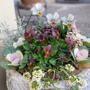 ①②すみれ図鑑•紫水✨素敵色です♪色変わりするということなので楽しみです💜鉢がまだ空いてないので、とりあえずのカゴに入れました✨③毎年作るワイヤーリース用に、先日お迎えした8ポットで約700円のビオラ♪生産者さんなので品質良好✨ ハウスいっぱい各色あり、お値段約10分の1なのにブランド苗に負けない美しさです😊 今年はパンビオさんのお迎えは控えめにするつもりでしたが、園芸店のお知らせで「すみれ図鑑」の入荷を知り行って来ました🤭